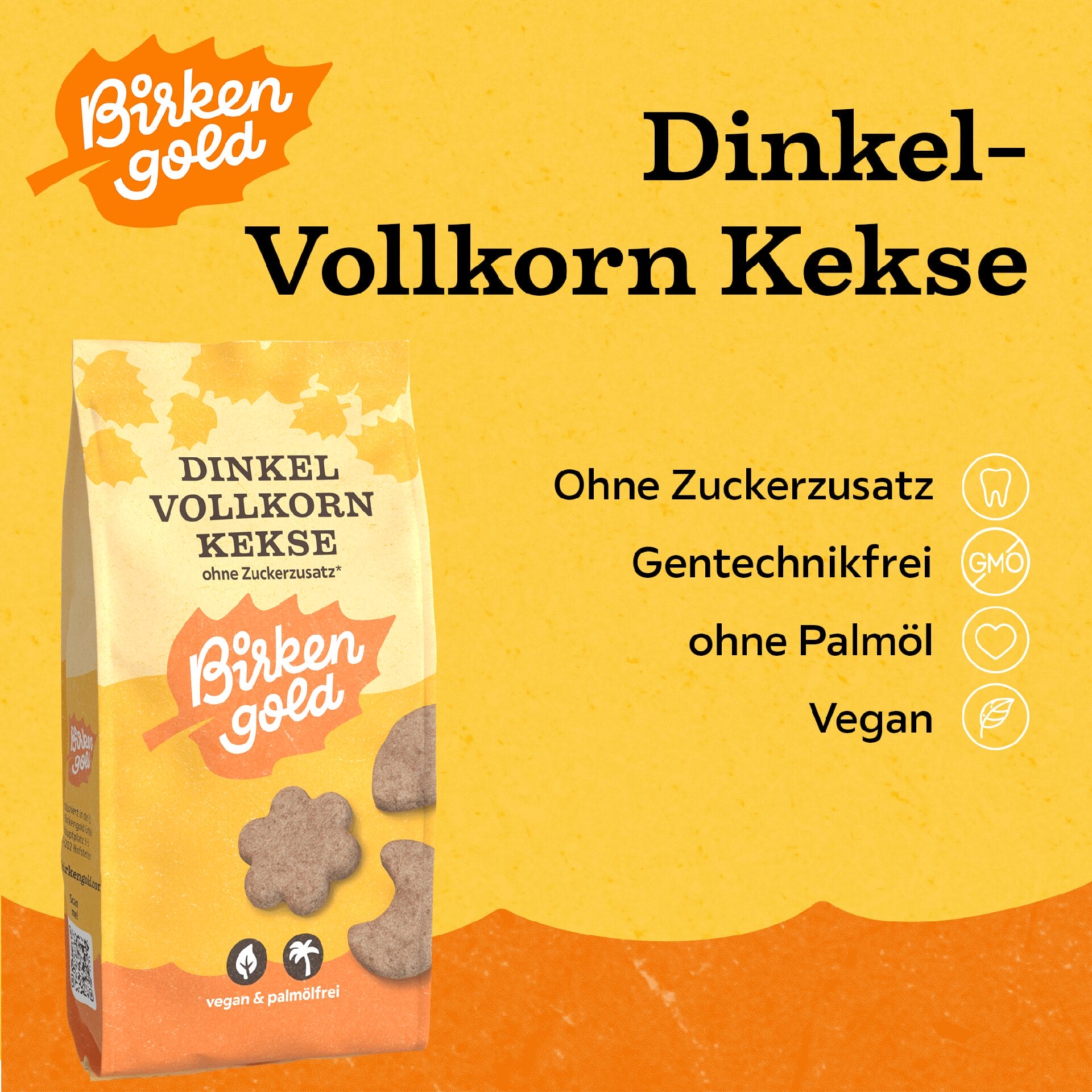 Unsere Birkengold®-Kekse werden mit viel Sorgfalt mit feinem Bio-Dinkel-Vollkornmehl hergestellt. Gesüßt werden sie natürlich nur mit Birkengold® Xylit. Zudem sind die Kekse vegan und schmecken einfach köstlich!