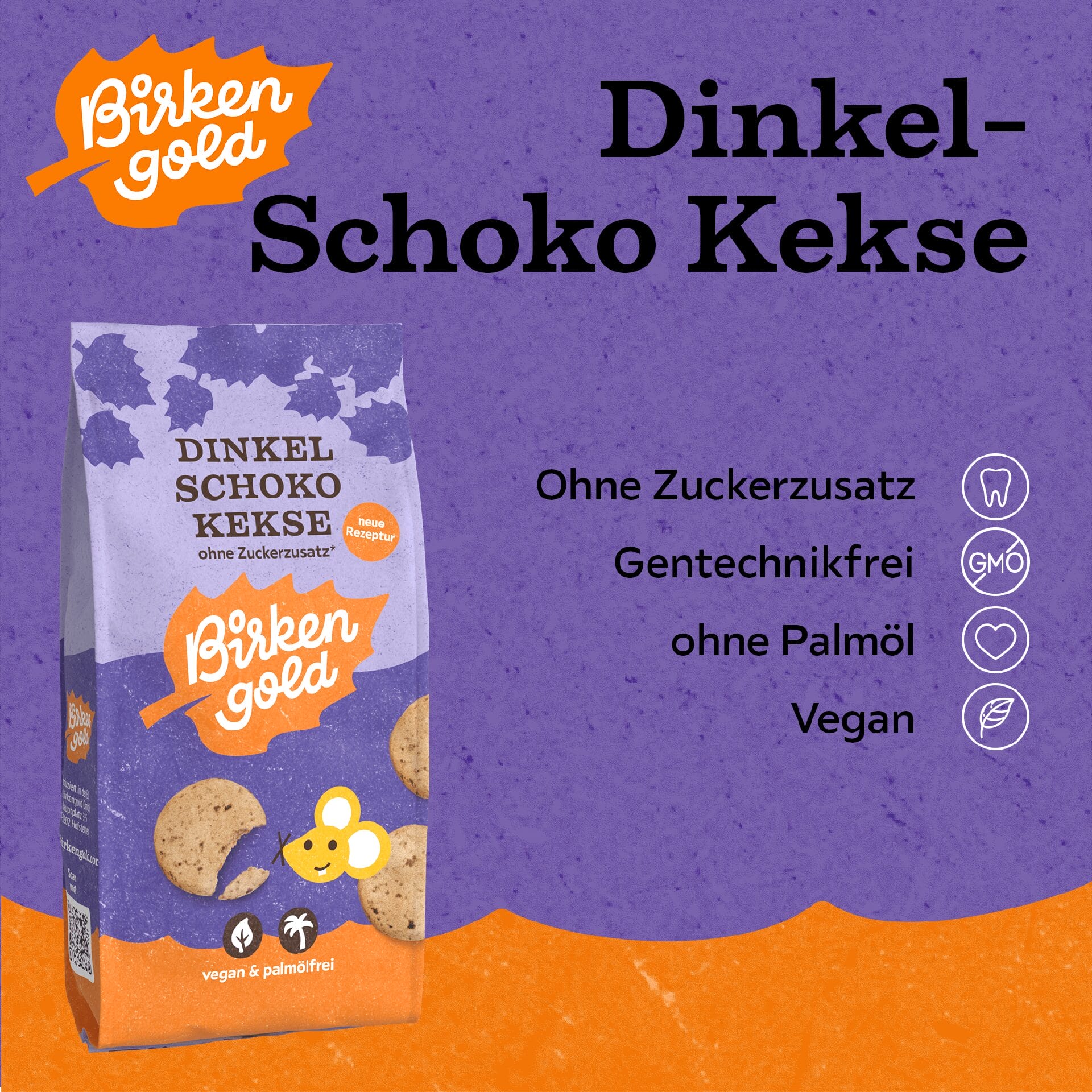 Unsere köstlichen Dinkel-Schoko-Kekse mit hochwertigen Maltit-Schokostückchen werden ausschließlich mit Birkengold® Xylit gesüßt. Das Dinkelgebäck ist die perfekte Alternative für zwischendurch. Vegan und natürlich kein Zucker zugesetzt!