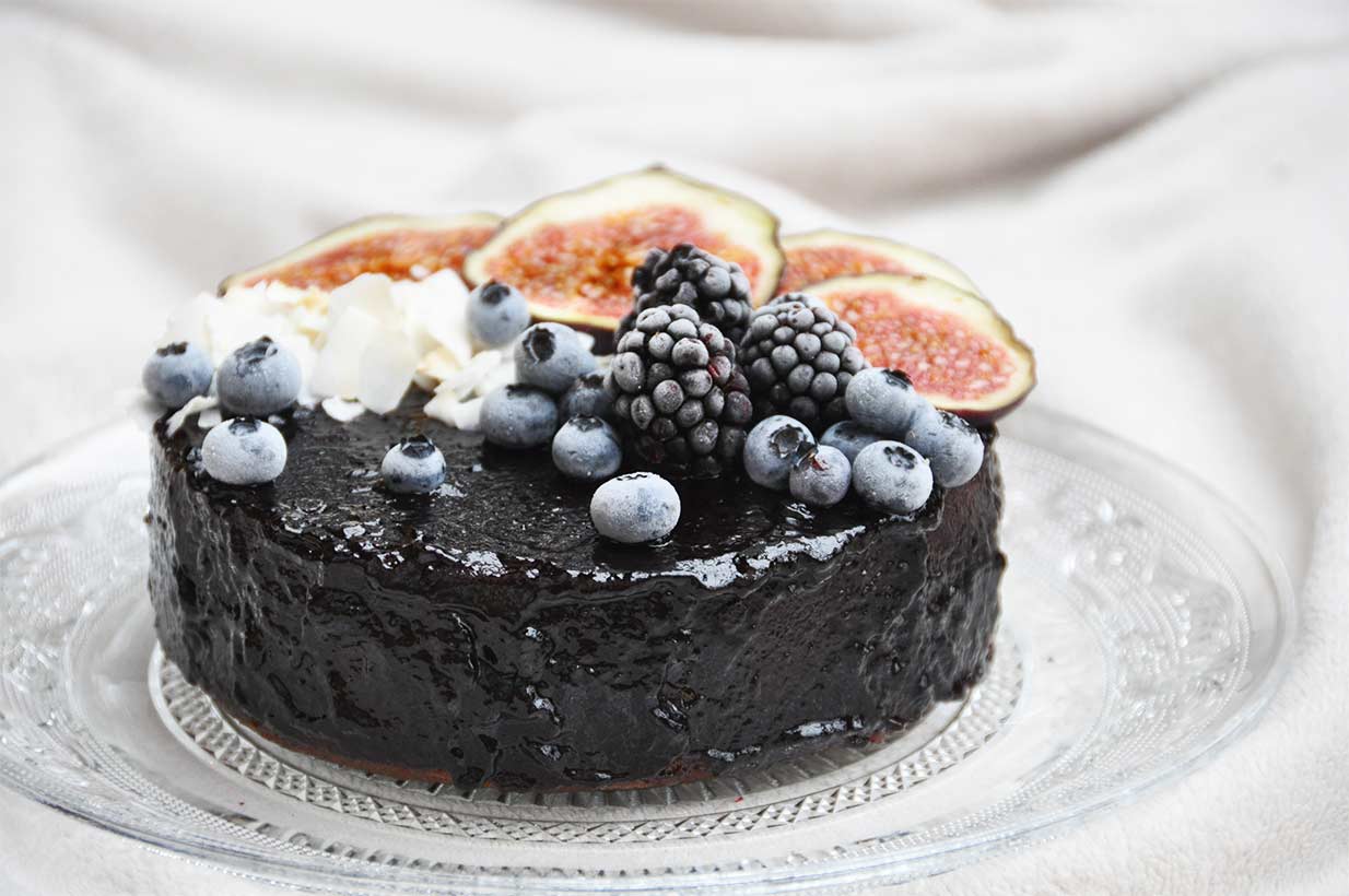 Für die Dekoration eine Feige in dünne Scheiben schneiden und schön auflegen. Ein paar Heidelbeeren platzieren und Kokosraspeln darüber streuen.