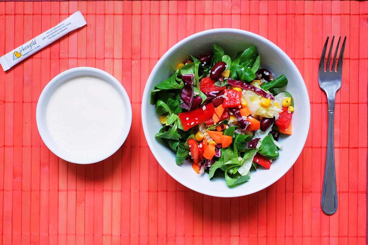 Dieses leckere Caesar Dressing passt hervorragend zu diversen Blattsalaten und ist noch dazu vegan!