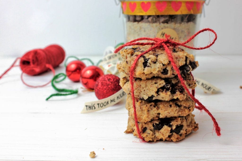Diese selbstgemachte Cookie Backmischung für vegane Chocolate Chip Cookies ist ein wunderbares Geschenk für alle Backfreunde und Naschkatzen!