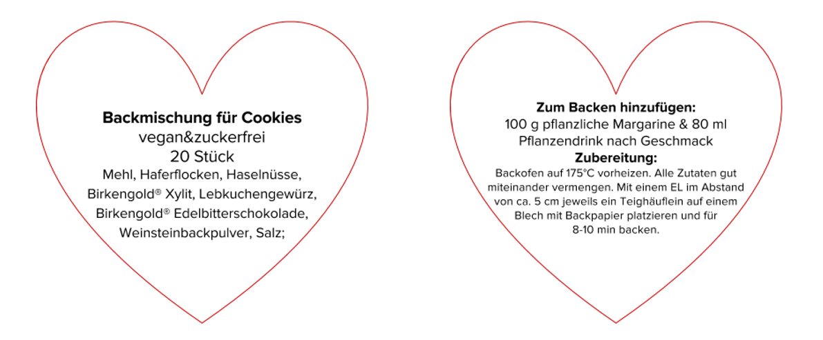 - Zum anschließenden Backen müssen nur noch zimmerwarme Margarine und Pflanzendrink hinzugefügt werden. Die Anleitung kann einfach auf einen kleinen Anhänger geschrieben oder unsere vorbereiteten Anhänger zum Ausdrucken (siehe unten) verwendet werden.