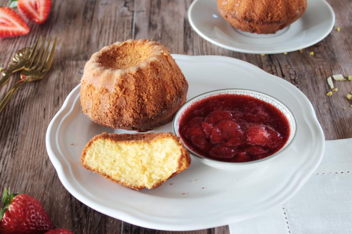 Zum Schluss den Dinkel Sandkuchen gemeinsam mit dem Erdbeerkompott servieren!