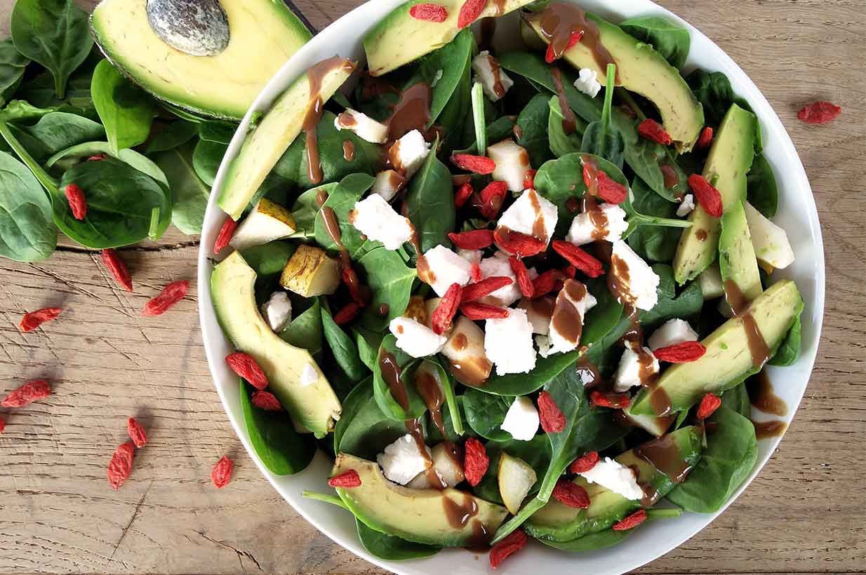 Zubereitung Goji-Spinatsalat mit Ziegenkäse