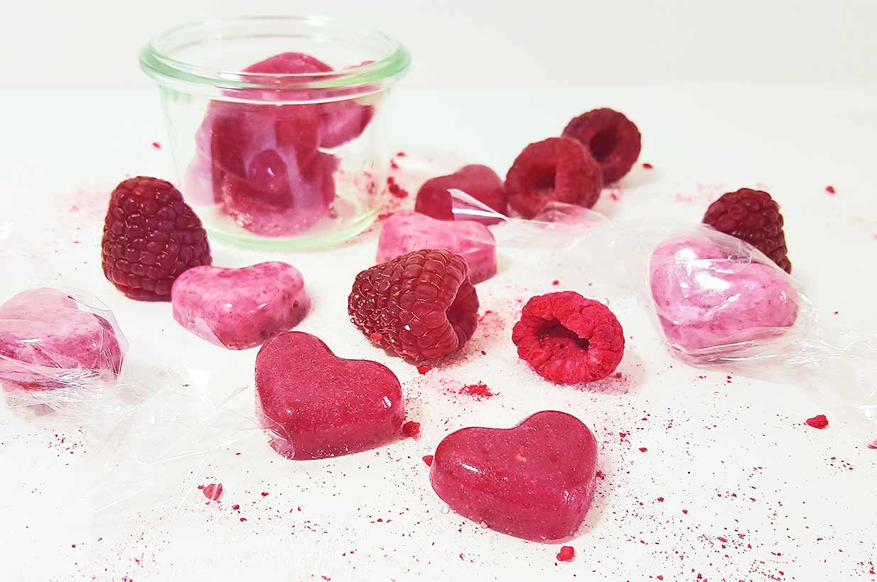 Diese selbstgemachten Herzbonbons mit Himbeergeschmack sind ein süßes Geschenk zum Valentinstag und Muttertag. Oder einfach so, um Danke zu sagen! Außerdem sind sie ohne Zucker! :-)