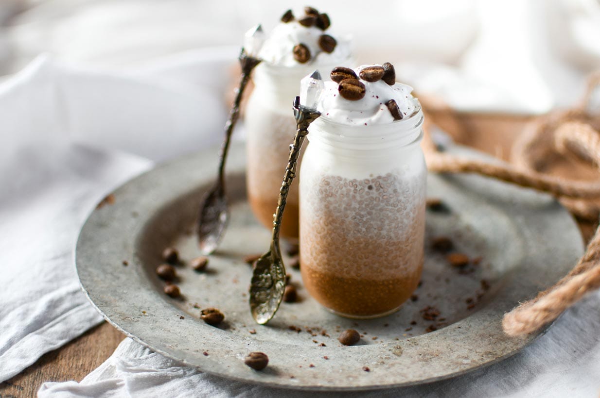 Kaffee Chia Pudding mit Mandelmilch