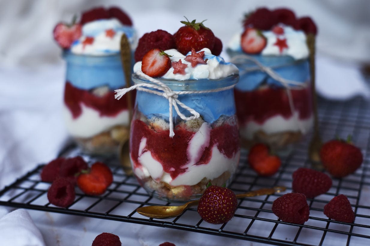 Dieses Dessert kann, passend zum amerikanischen Unabhängigkeitstag, am 4. Juli serviert werden!