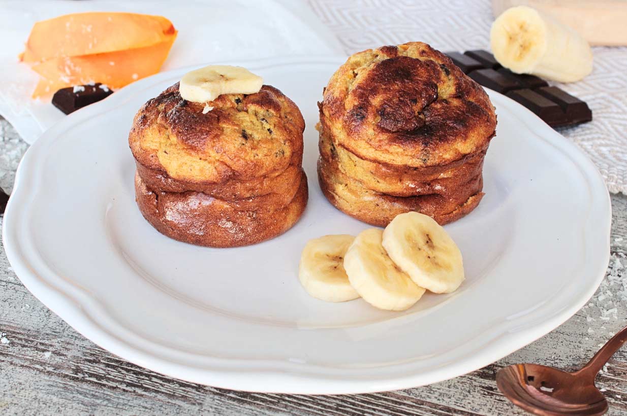 Zuletzt das Küchlein mit etwas Banane und zusätzlicher Birkengold Edelbitter Schokolade verzieren und am besten noch lauwarm genießen!