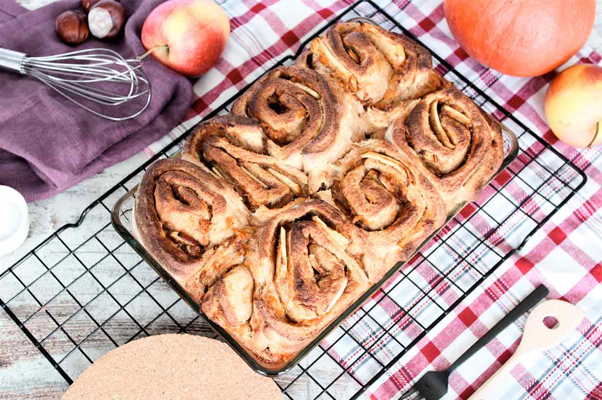 Die herbstliche Kombination der zuckerfreien Kürbis Zimtschnecken sorgt für die richtige Portion "Hygge" an kalten Abenden.