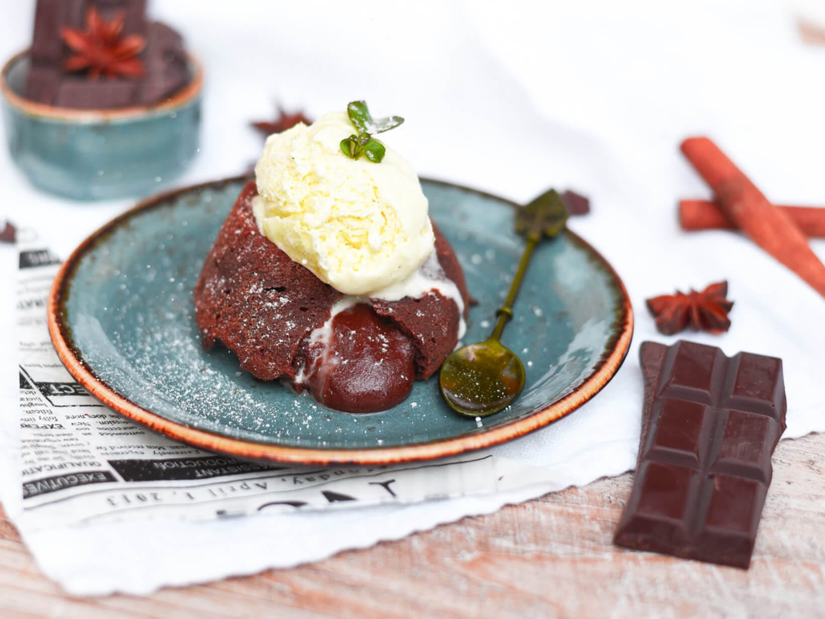 Nach dem ersten Bissen in den weichen Teig des Lava Cake fließt der flüssige Kern aus dem Küchlein und sorgt für eine besonders leckere Überraschung.