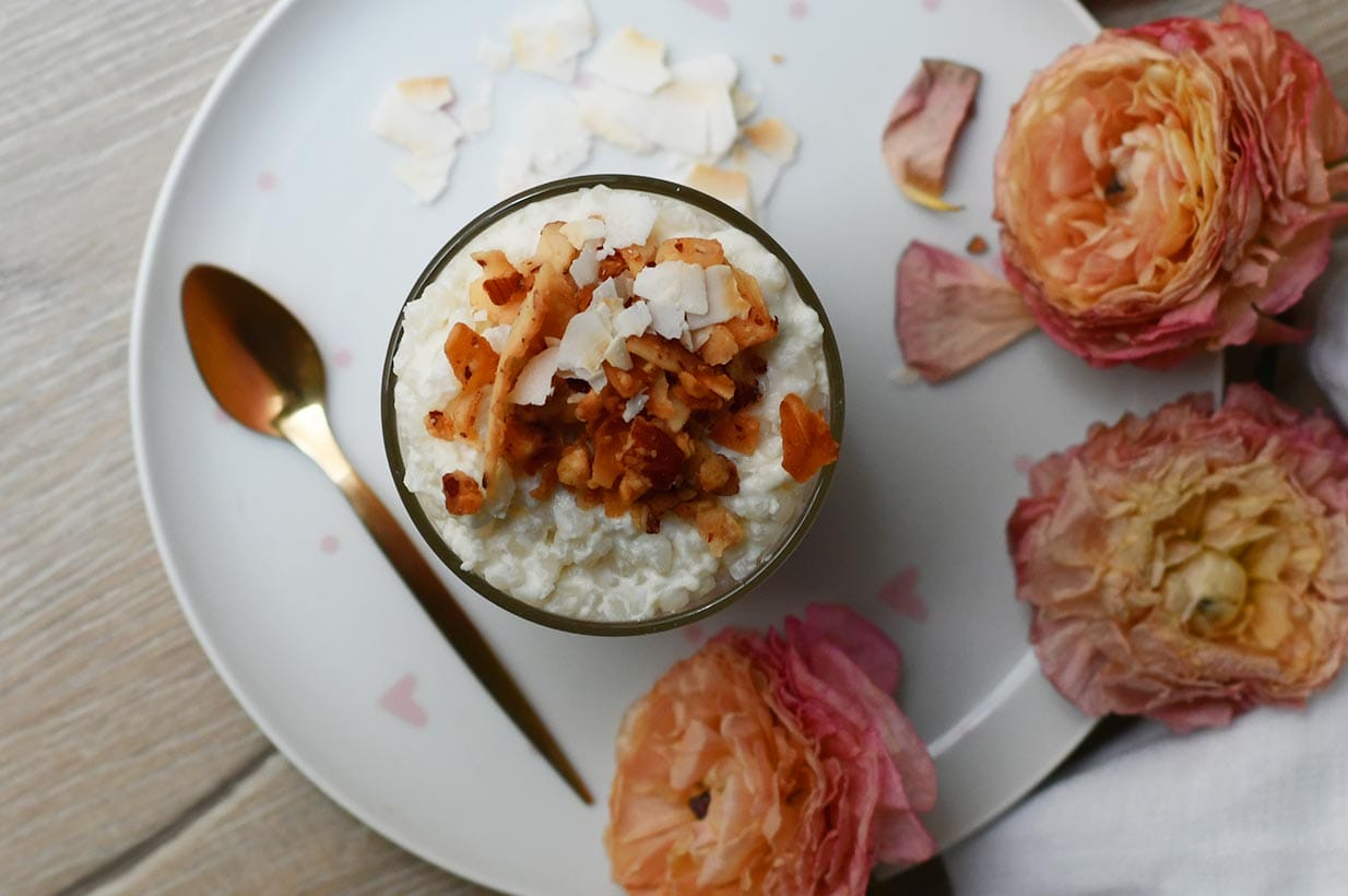 Dieser Low Carb Milchreis lässt sich als kohlenhydratarmes Dessert oder zum Frühstück verzehren. Glutenfrei und ohne Zuckerzusatz. Gleich probieren!