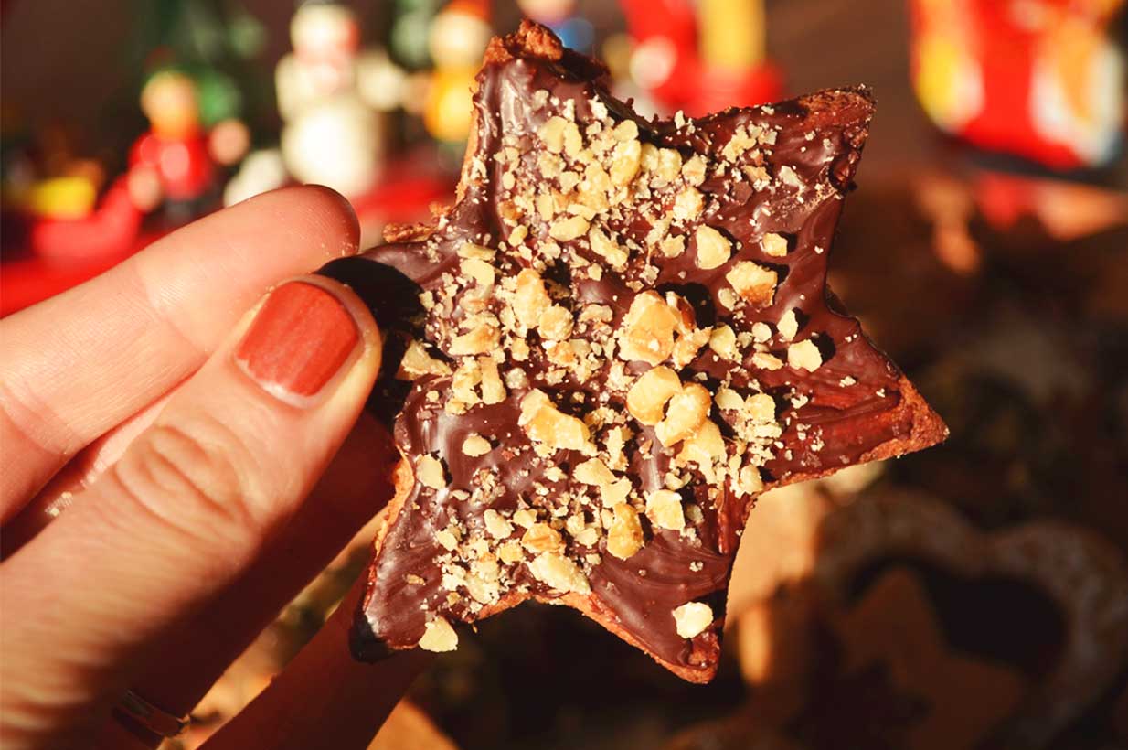 Zum Schluss die Birkengold Zartbitterschokolade im Wasserbad schmelzen und die Kekse einseitig eintunken.
