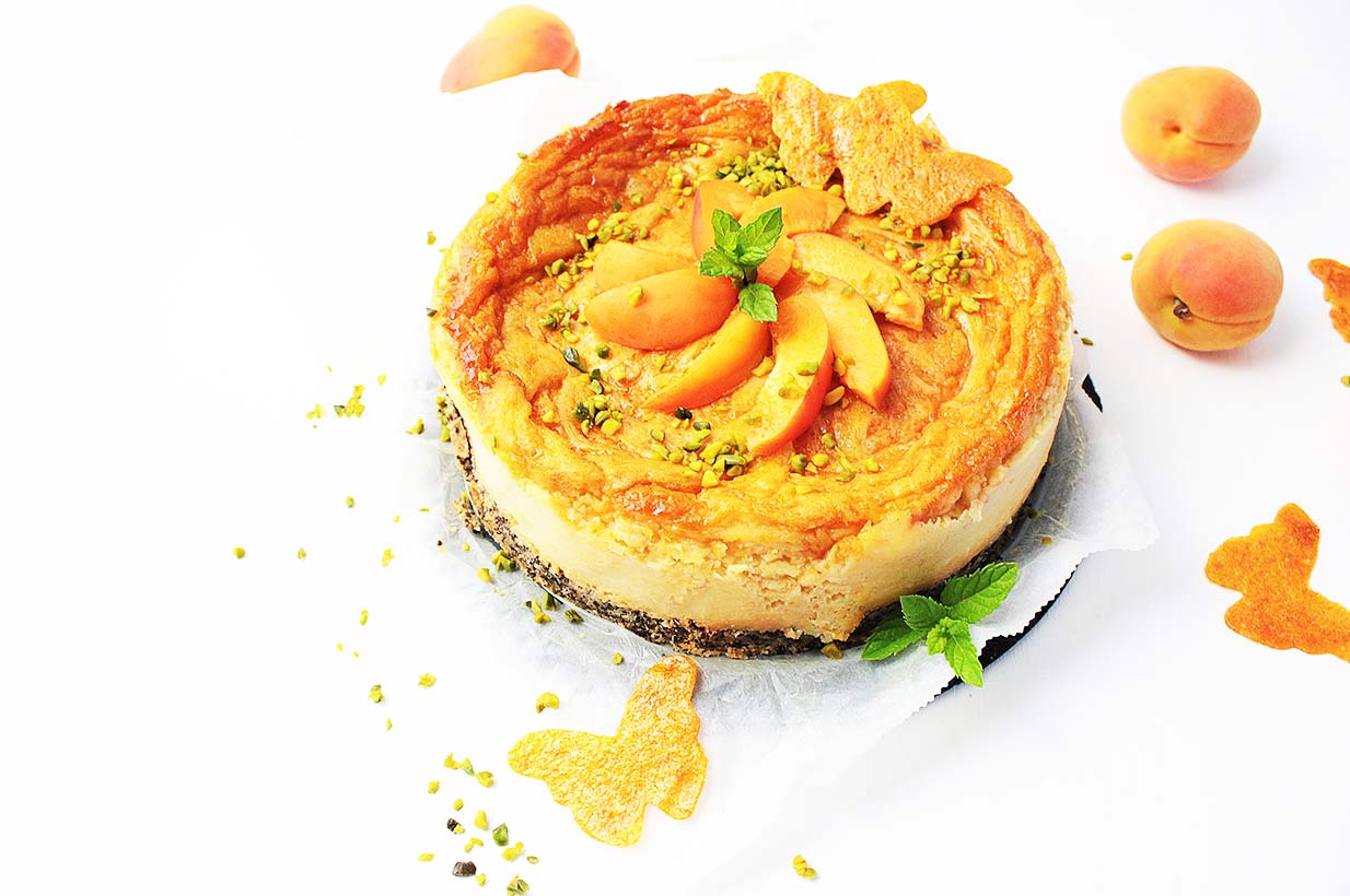 Dieses Rezept für einen ansehnlichen Cheesecake mit Marille ist ein fruchtig, cremiger Leckerbissen mit knusprigem Keksboden und besonderer Dekoration.