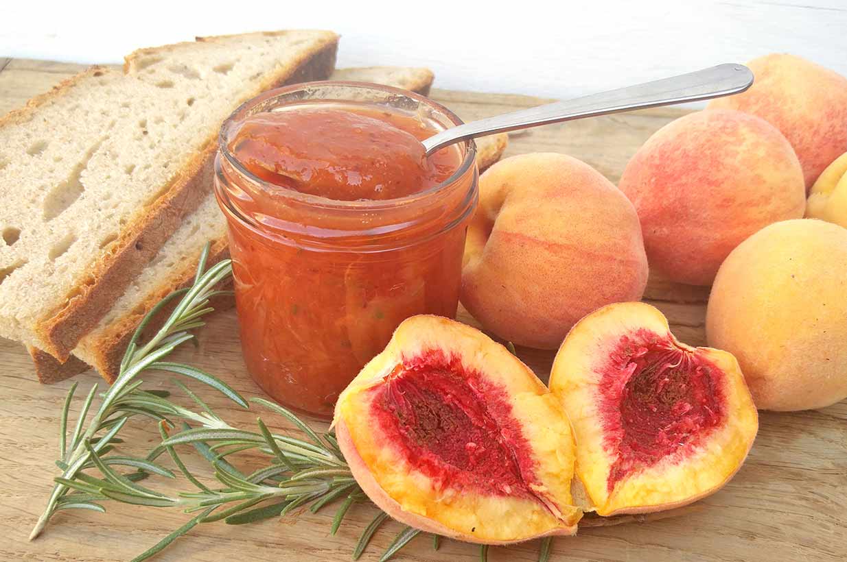 Diese fruchige Pfirsichmarmelade begeistert mit ihrem herrlich süßen Geschmack. Ganz still und heimlich hat sich da auch noch Rosmarin dazugemischt - so wird die zuckerfreie Marmelade zu einem ganz besonderes Geschmackserlebnis!