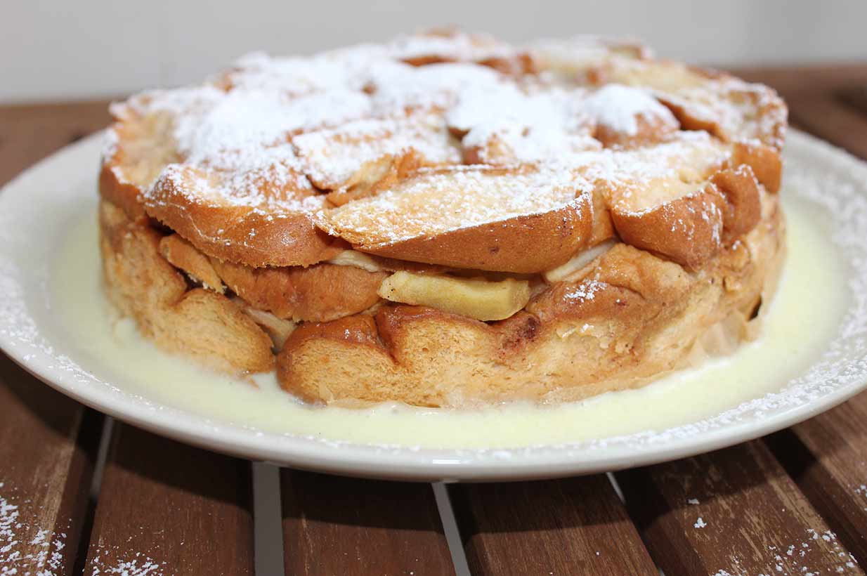 Da im Gebäck meist schon Eier und Zucker verwendet wurden, empfehlen wir dieses eifreie Rezept zur optimalen Verwertung von übergebliebenen süßen oder neutralen Backwaren. Der Scheiterhaufen passt sowohl als Hauptgericht als auch Besonderheit beim Nachmittagskaffee.
