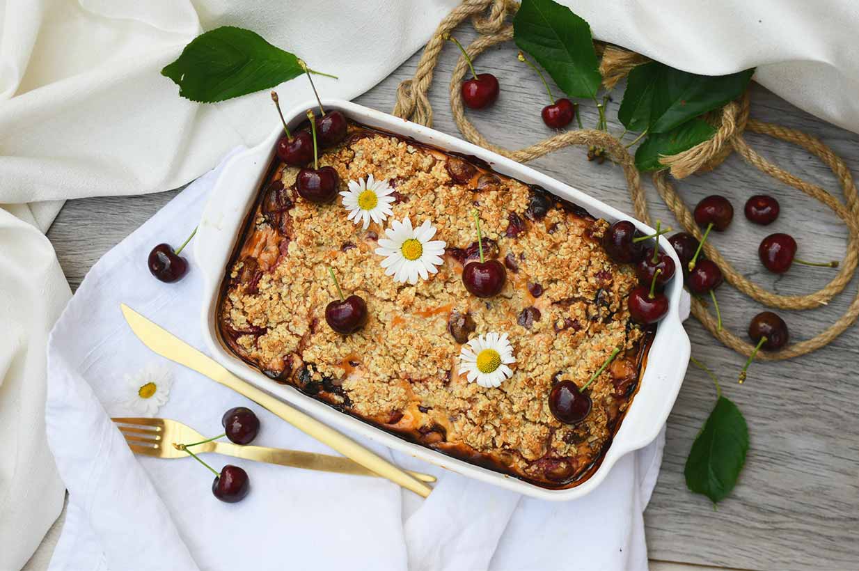 Dieser Streuselkuchen mit Schwarzkirschen lässt jedes Herz von Crumbel-Fans höher schlagen. :-)