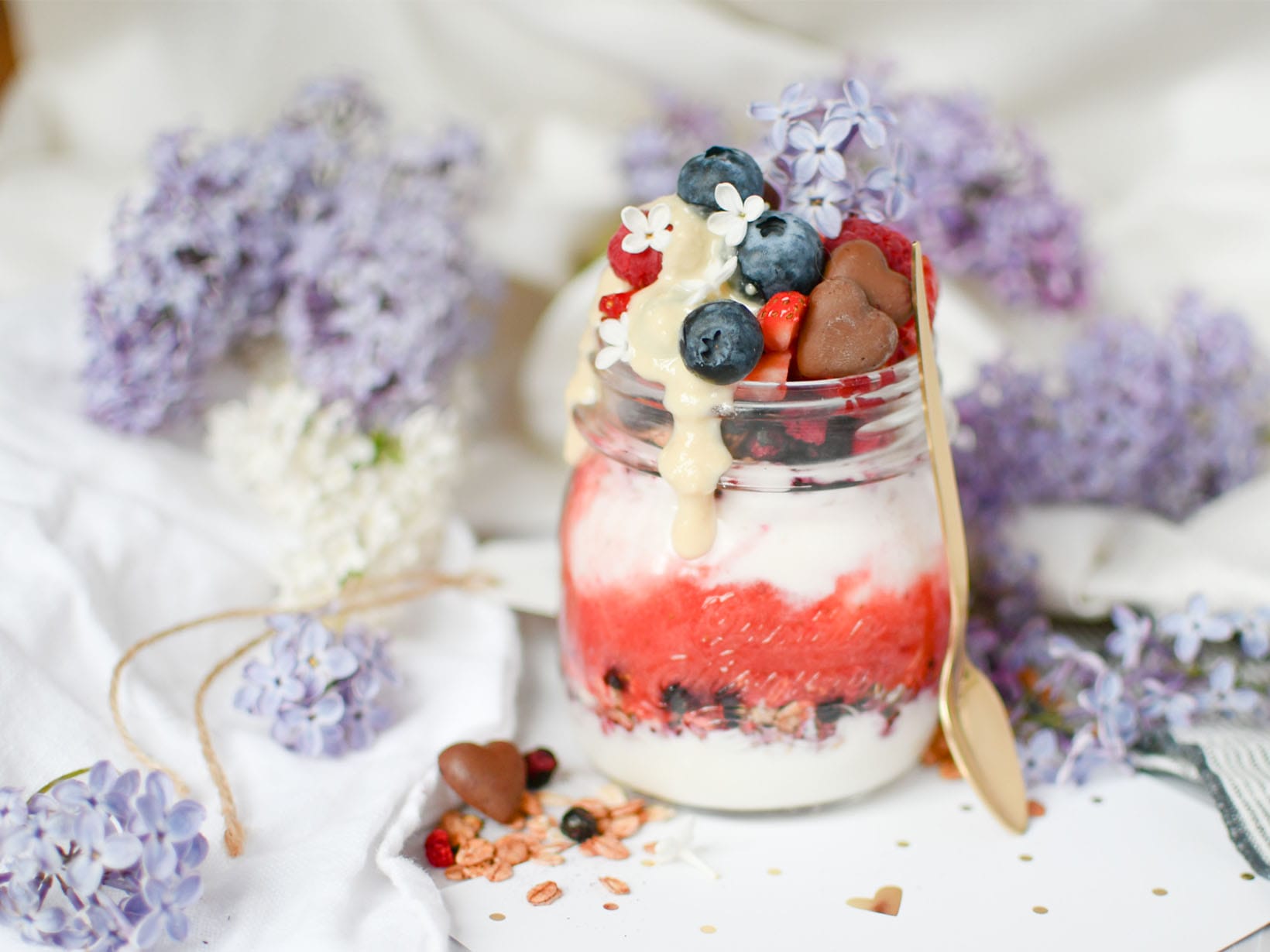 Zuletzt mit Beeren und einem Klecks Mandelmus dekorieren.