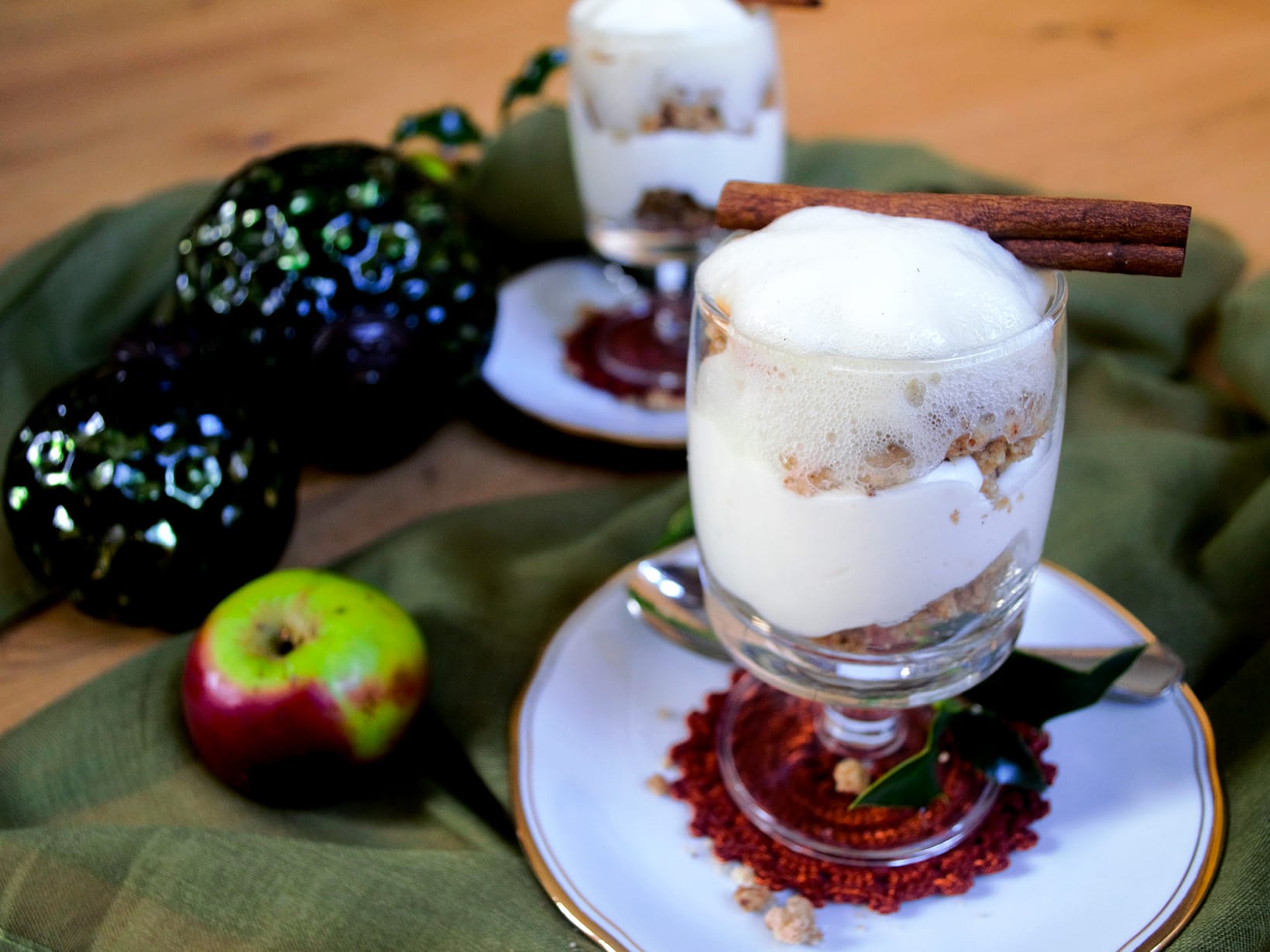 Eine Kombination von Spekulatius, Topfen und Bratapfelspuma machen das Weihnachtsdessert im Glas zu dem Highlight am Weihnachtstisch!