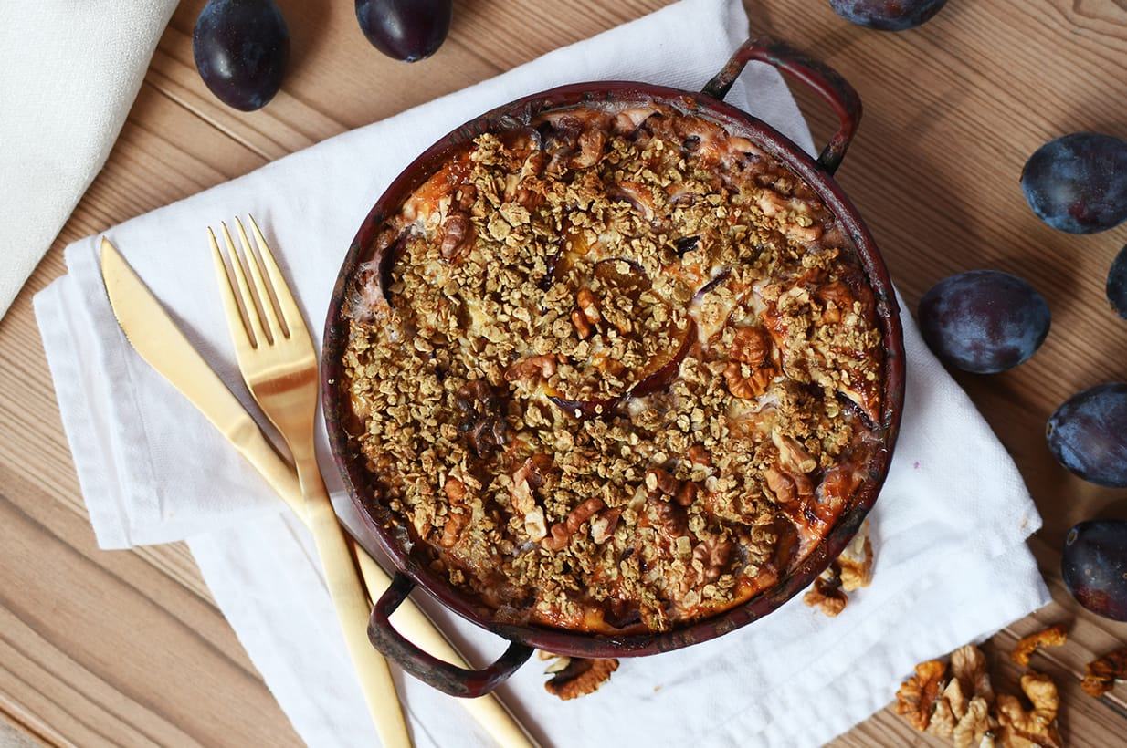 Zwetschgen Haferflocken Crumble ohne Mehl